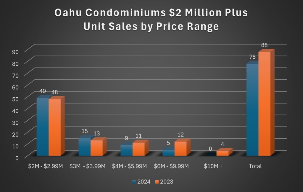 However, the $6 million to $9.99 million price range saw a decline in sales, dropping from 27 in 2023 to just 16 in 2024. This suggests that while demand was up in general, ultra-high-end properties in that particular price bracket experienced a slowdown.